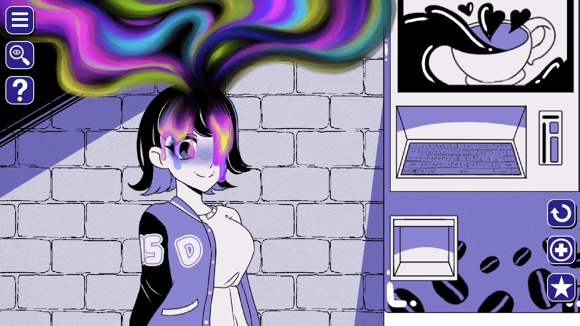 На автомате нет конкретных кнопок, а только клавиатура. Набрав запрос, можно получить напиток. Девушка будет по разному реагировать на них как словесно, так и визуально меняя свой образ. В одних случаях она может легко преобразоваться внешне и с такими так же есть сценки 18+, а так же может превратиться в ужасных монстров. Что интересно монстрические образы порой появляются совершенно от безобидных слов. Некоторые напитки можно сочетать для получения новых результатов, а некоторые и вовсе могут привести к летальному исходу. Поле для экспериментов большое. Форм и обличий у девушки насчитывается больше 600.