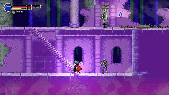 Я к тому, что она… Как бы помягче сказать… Размеренная. Несмотря на фирменную «алукардовскую» походку, шевелит булками подопечный крайне неспешно. Хвала бесплатной телепортации к любому чекпоинту, — но значительную часть пути между точками телепортации всё равно придётся преодолевать на своих двоих. Тем не менее, медленная ходьба — это всё ещё ходьба, в отличие от боевых приёмов, которые почти все делаются по стойке «смирно». Чтобы отхлестать кого-то, отбить снаряды или вырвать дверь, необходимо стоять на месте как вкопанному. Кроме этого, многих врагов перед их окончательным превращением в труху нужно ещё добить. Тут уж цепи вам не бро — придётся самостоятельно подойти к присмиревшей тушке и примять её пяткой, чтобы уж наверняка не встала. Не успеете добраться до упавшего врага — получите второй раунд битвы с ним.