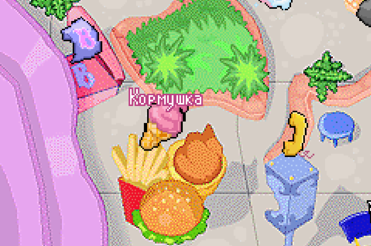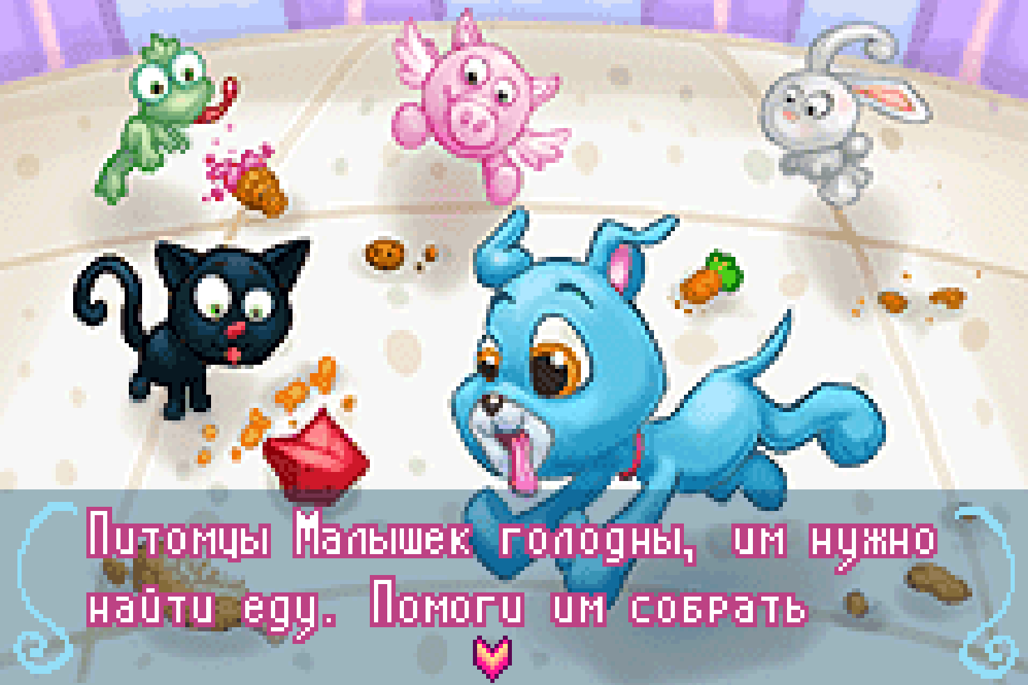 - Кормушка: Питомцы голодны, помоги им найти еду, пока ее не убрали.