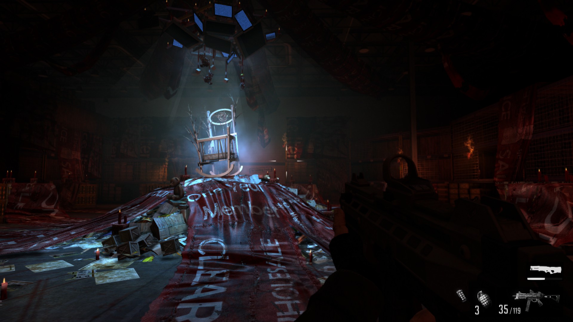 Атмосфера игры настолько же жуткая и отвратительная, повсюду кровавые надписи и сатанинские знаки. Уровни будут разительно отличаться от того, что мы видели в первой и второй частях, но цвета и места все те же, то есть серые склады и удобные офисы.