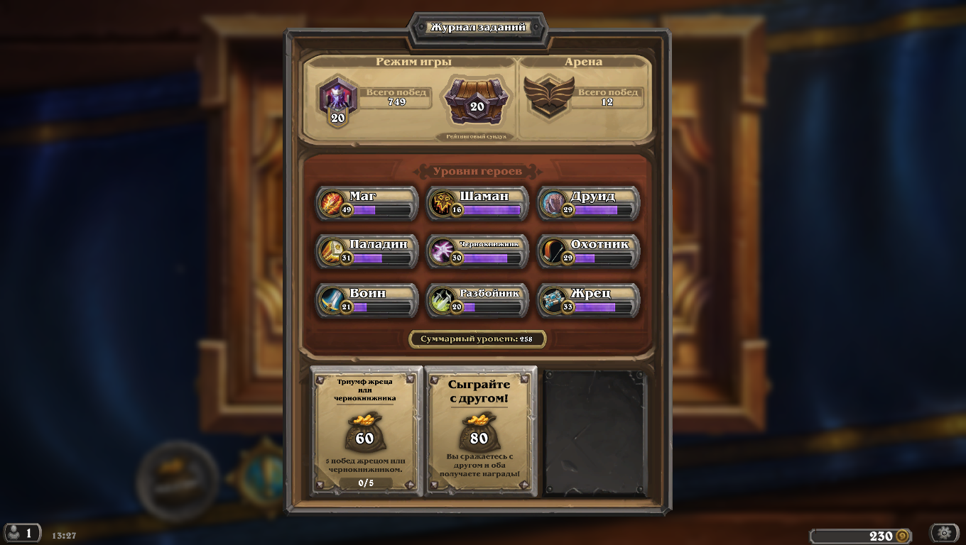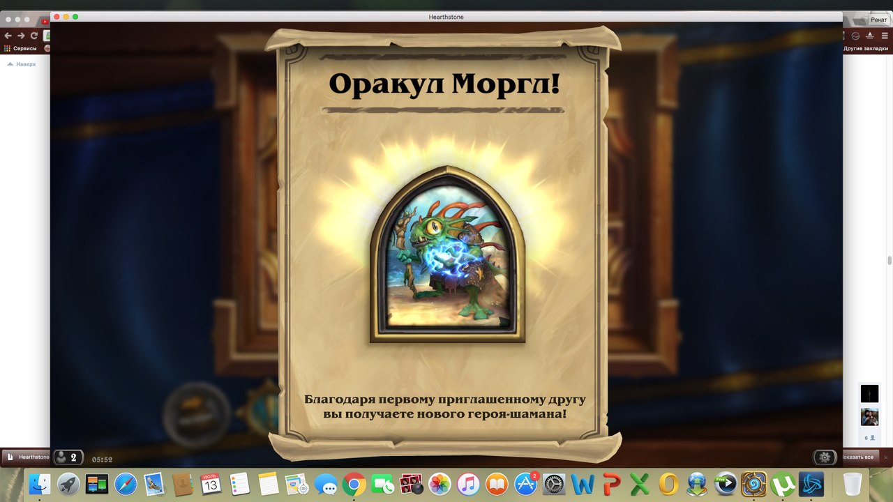 Так и было уговорил друга создать акк, потом просто тупо за него быстро рашем пробежался. Повезло с паками карт выпал золотой Чо я его на пыть и сделал Йога, потом все остальные карты с паков других классов (не Мага) распылил и сделал себе всяких Призывателей Бездны, Маназмеев, Чарометов итп. Очень быстро за 3 часа прокачал Джайну до 17 лвла и Рексара до 3 лвла (учебная аренка бесплатная самая первая). По квесту на Моргла учитывается суммарный лвл героев друга, которого ты пригласил. То есть Джайна 17+Рексар 3=20 лвл, который как необходим для награды скином Моргла для Шамана.