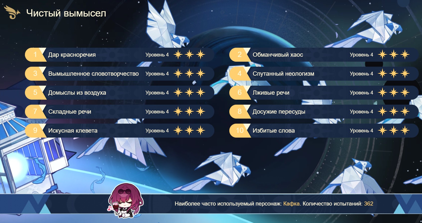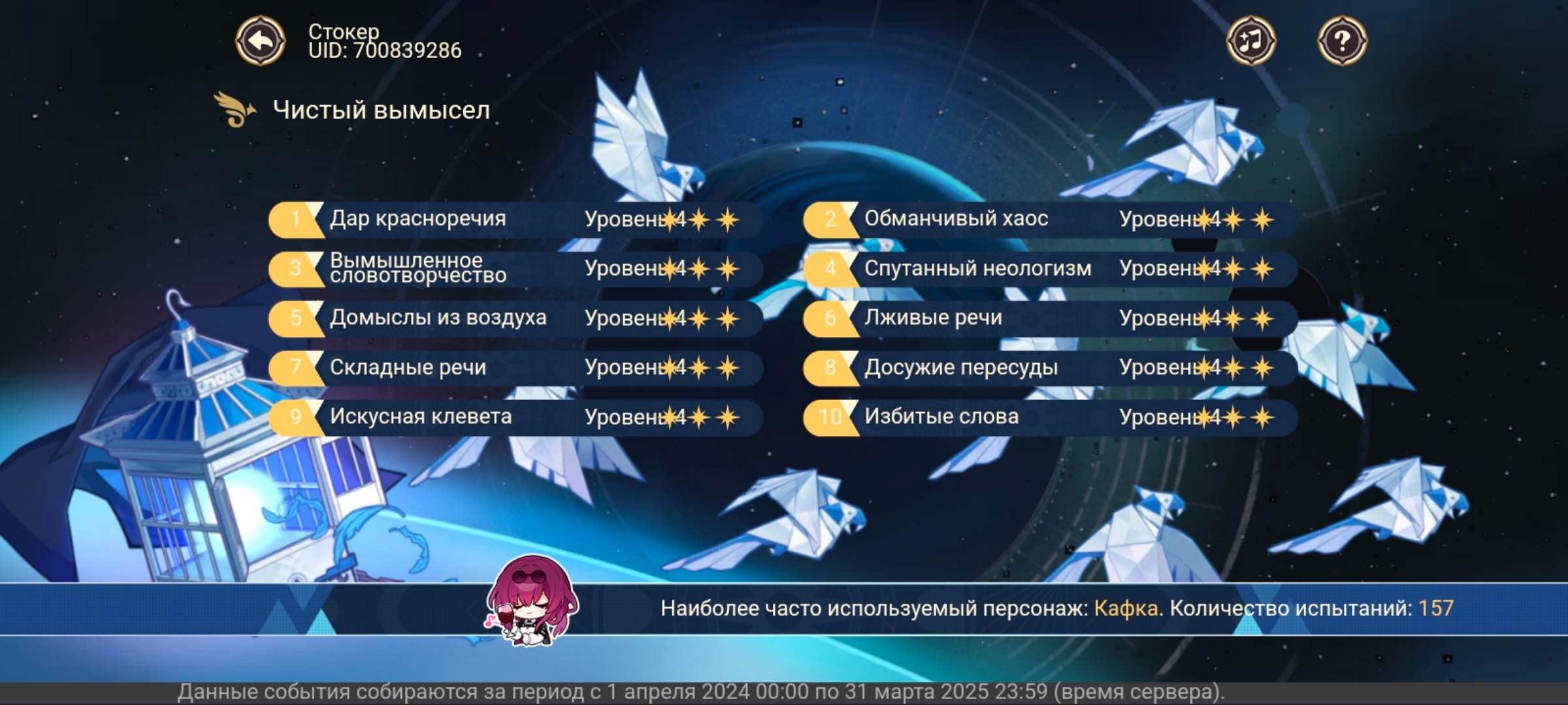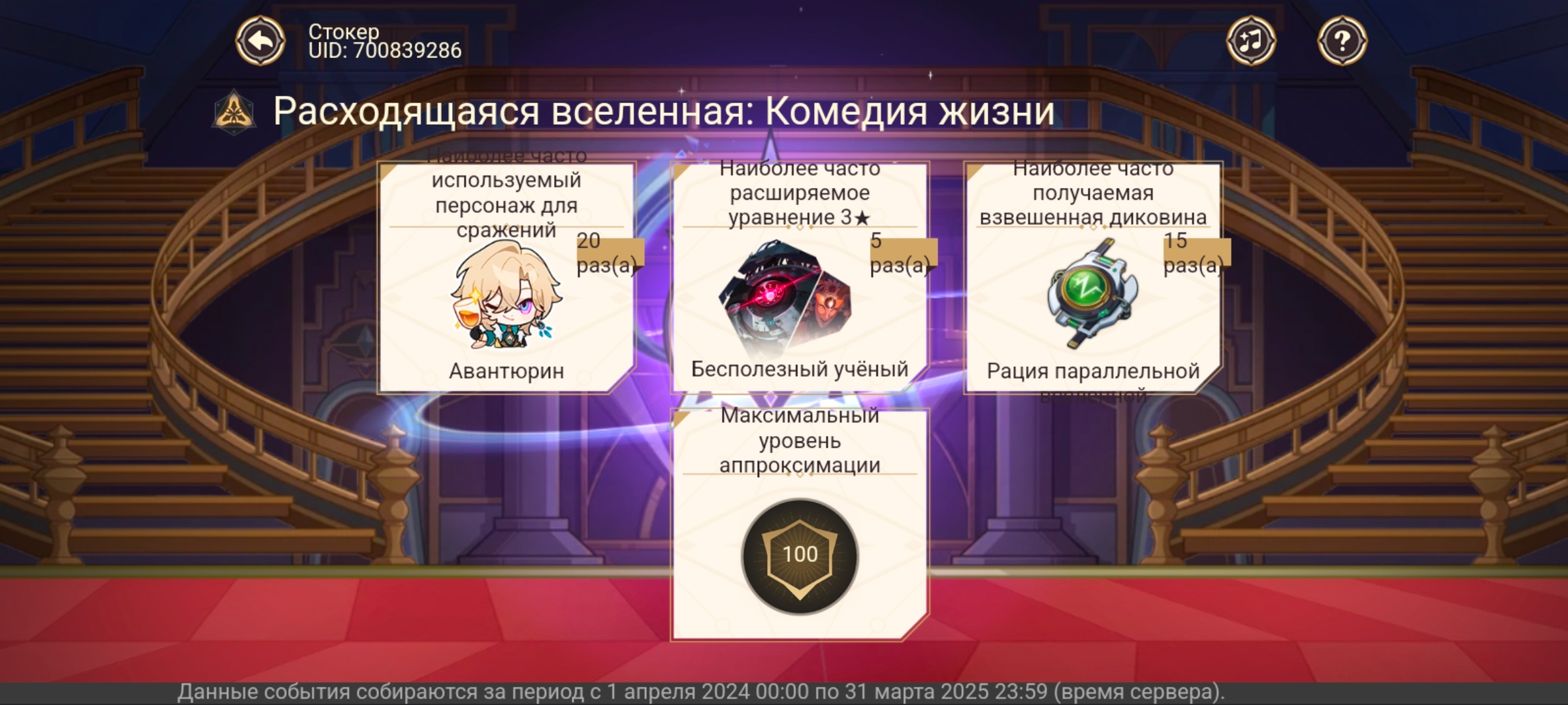 По статам я просто затестировал эту тему с подсказками по развитию. Подобрались арты, один перебросил через кость, но остальные были норм. Но чет смотрю видимо недостаточно (судя по пикче Стокера): 6500 хп, 1500 дамаг, 67кш, 170ку, 60-70 проц квантового дамага. Надо по ходу докручивать хп. А то у Стокера вон 9к. Ну и может атаку поднять тоже. У него 1700, у меня 1500. Короче хз. Пока что буду лениво это делать.