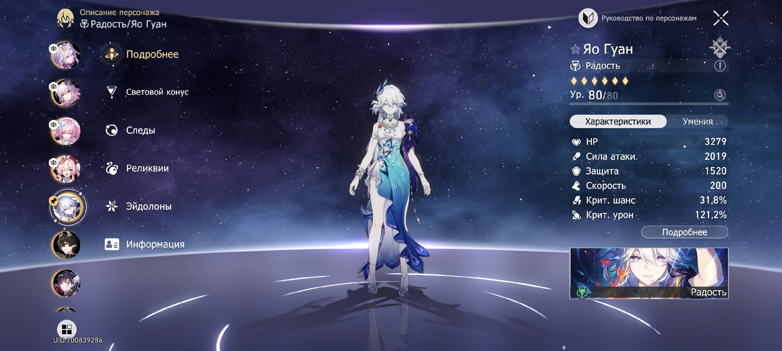 Там вроде со всех четырех персов Радости считается, хотя последние два не особо много дают. А так, байт на сигну и второй эйдолон для Яо Гуан, который накидывает всем 12% скорости. Может еще подвезут перса Радости, который будет бафать скорость сам или с конуса ;)