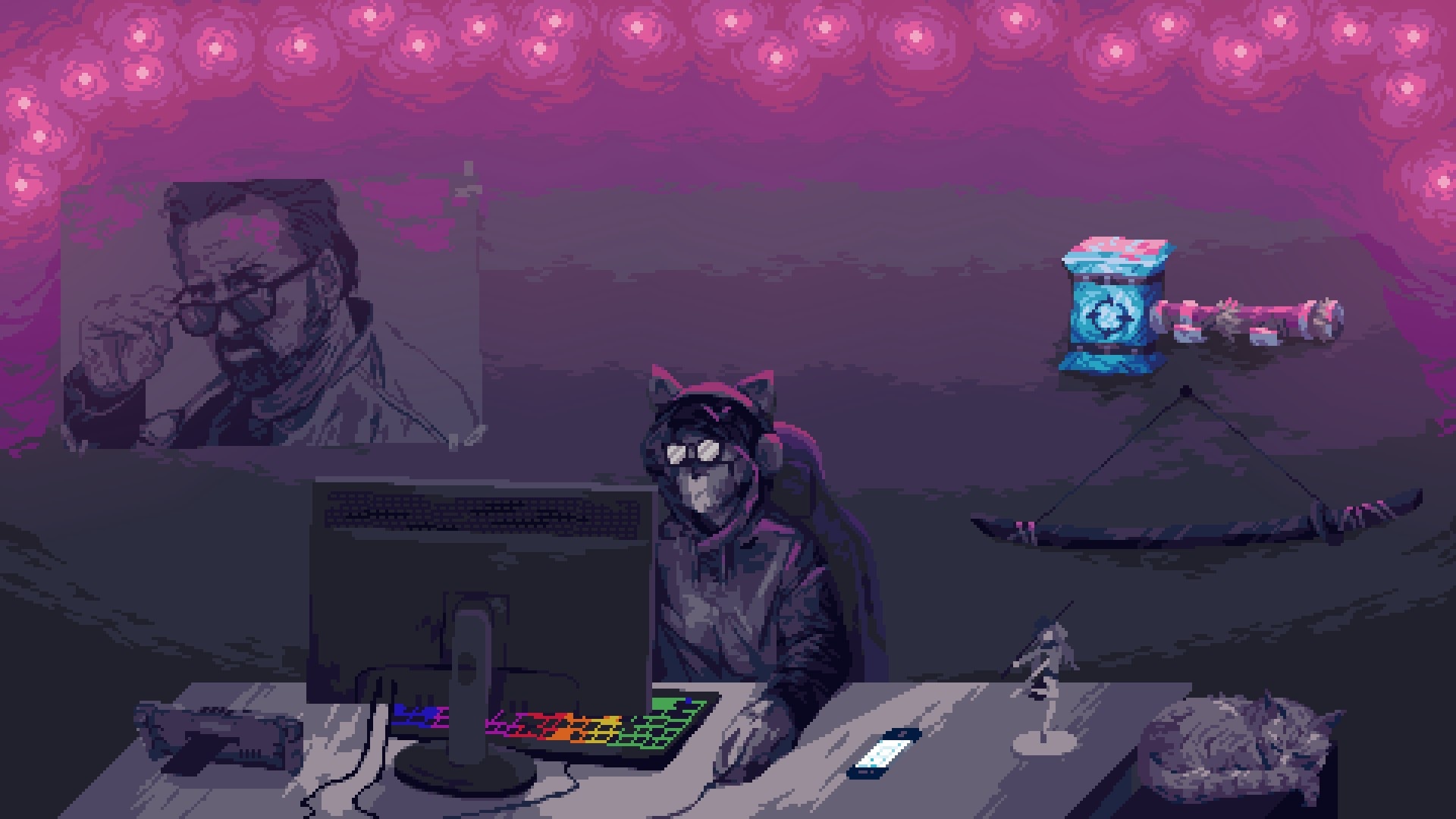 Вы играете за типичного геймера-анимешника, который пытается ходить на свидания, но постоянно отвлекается на уведомления о новых играх, стримах и аниме. Ваша задача — либо мастерски отбиваться от навязчивых поклонниц, либо… наконец-то сделать выбор в пользу реальной жизни (или не делать).