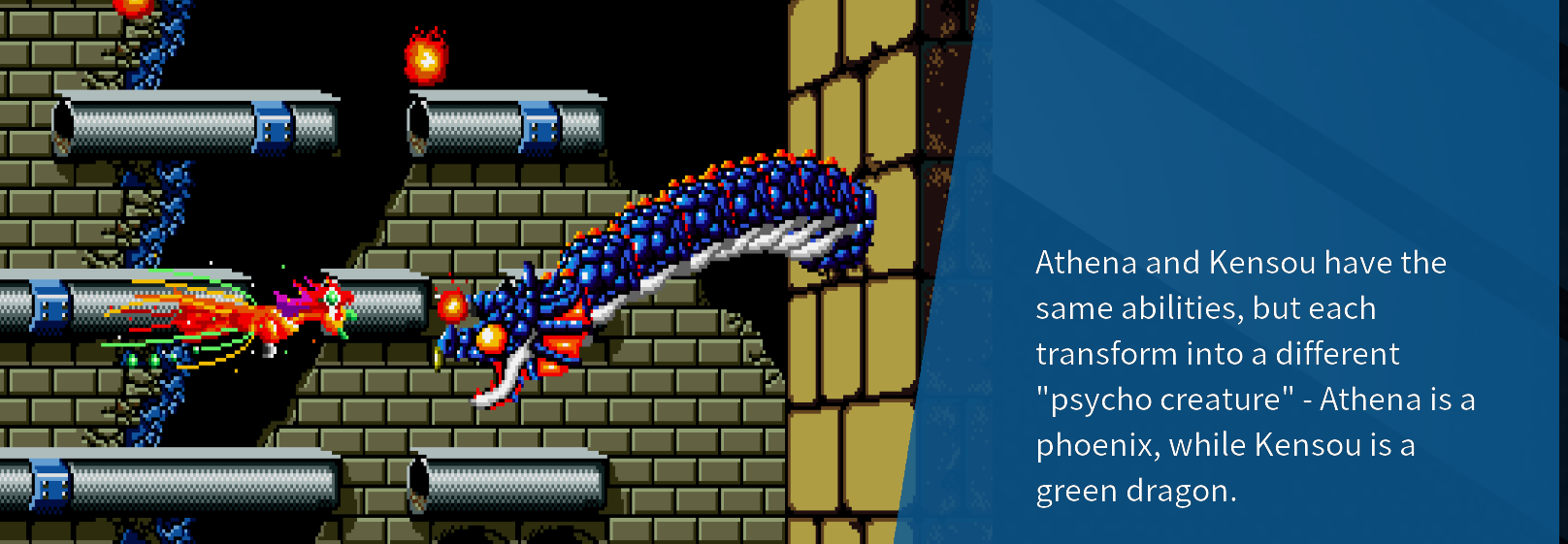 Psycho Soldier это смесь платформера и скролл шутера. Постепенно в игре идёт горизонтальная прокрутка, а сам игрок должен перемещаться по условным этажам уровня дабы найти нужный проход или для того, чтобы увернуться от противника или его снаряда. Игра выполнена в аниме стилистике, а в её саундтреке иногда проскакивает вокал.