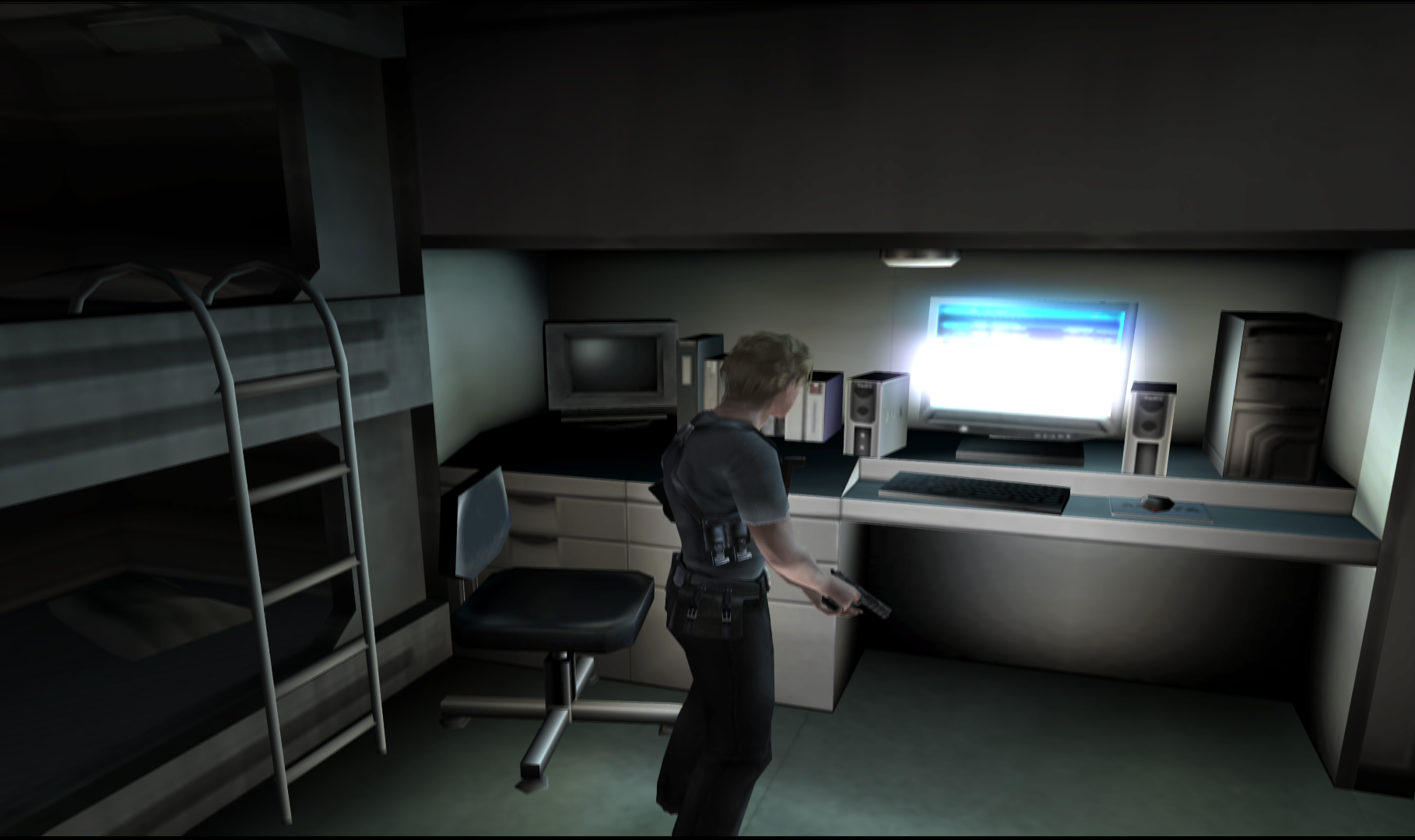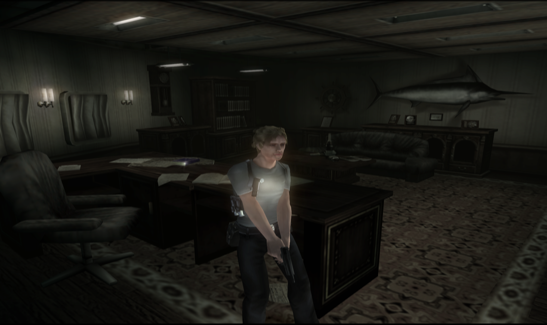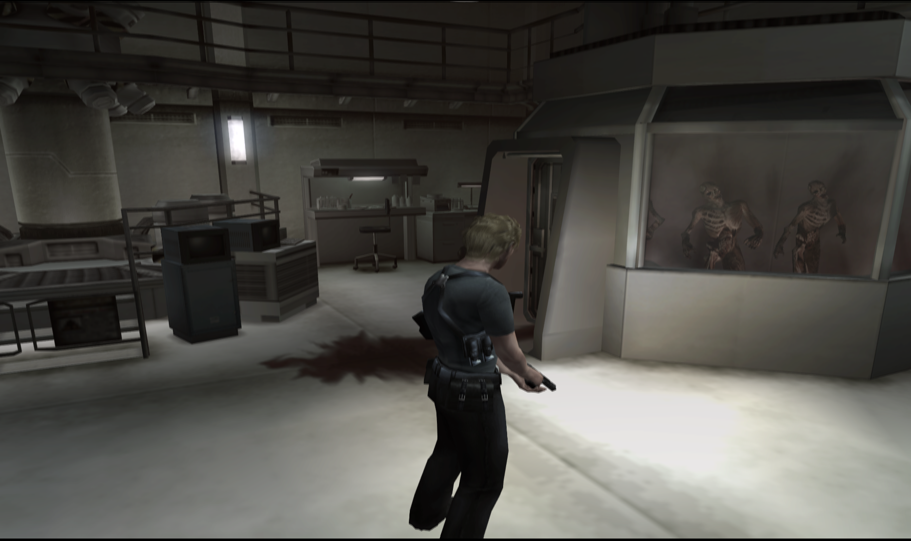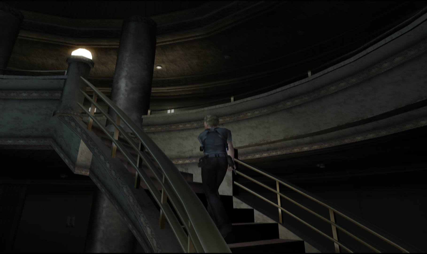 Отличительной черта именно этой игры в серии стрельба от первого лица, перемещение персонажа при этом происходит от третьего лица, камера следует за персонажем. Игра по сложности относительно легкая. Есть весьма неплохой русский перевод (даже с озвучкой) если поискать, хотя сложного текста в игре нет, рекомендую насладиться.
